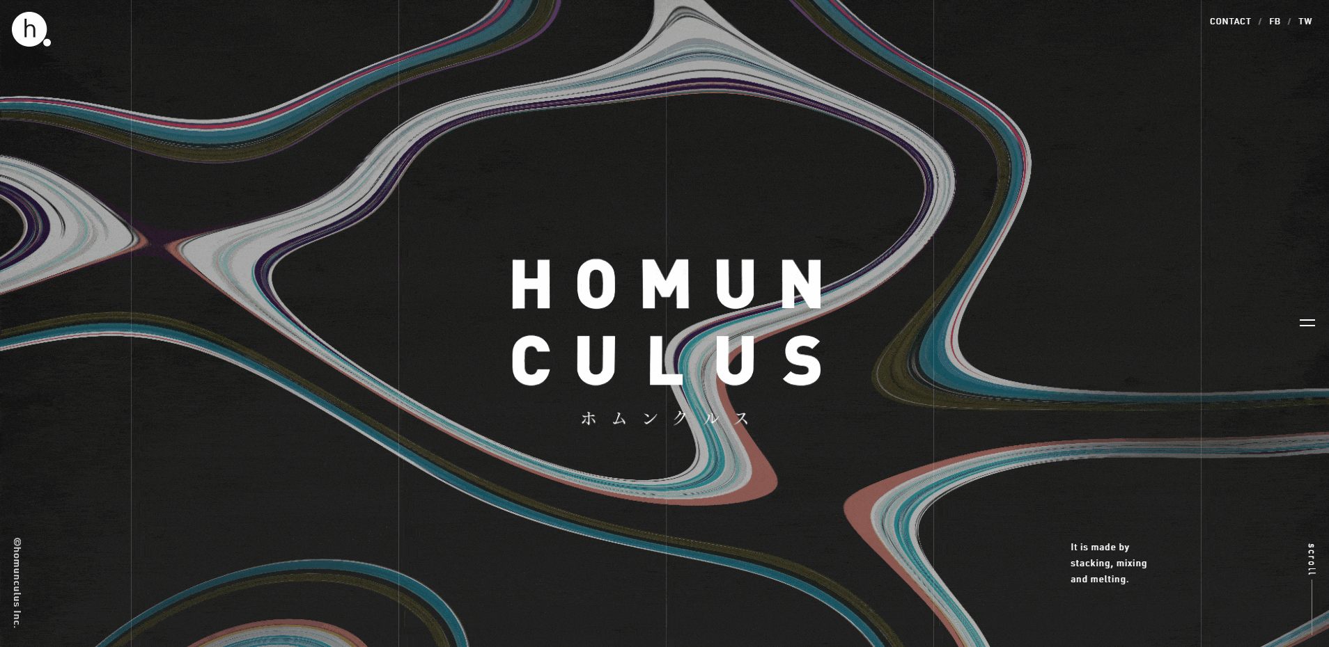 こちらのサイトも、メインビジュアルの背景がアブストラクトで、ページ全体が、ホバーすると水面がゆらめくようなアニメーションになっています。