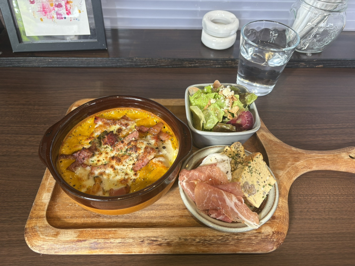 かぼちゃとニョッキのグラタンがメインのプレートだったのですが、今まで食べたグラタンの中で一番おいしくてとっても幸せでした。