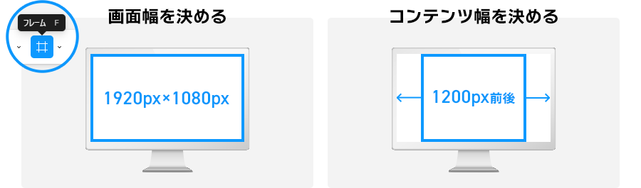 PC版なら横幅1400~1920pxの画面サイズのFrameを作り、