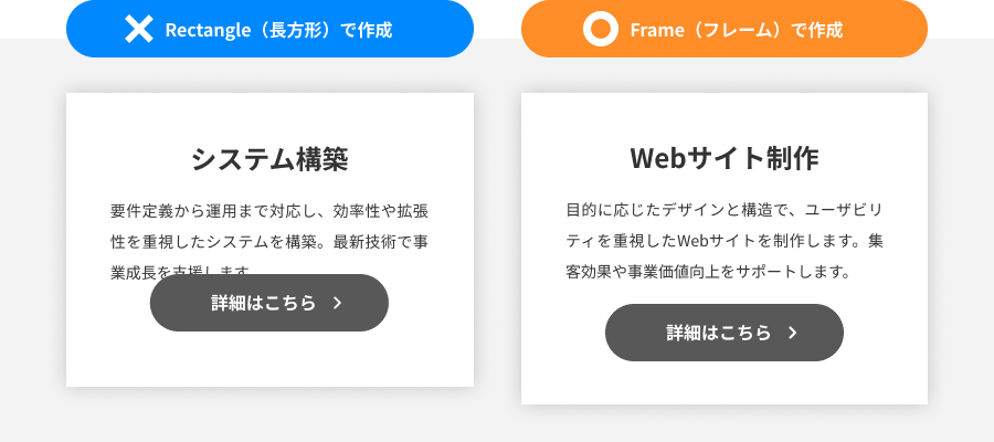 Frameを使っておくことで、Figmaの強みであるAuto Layoutなどの機能を活用できます。