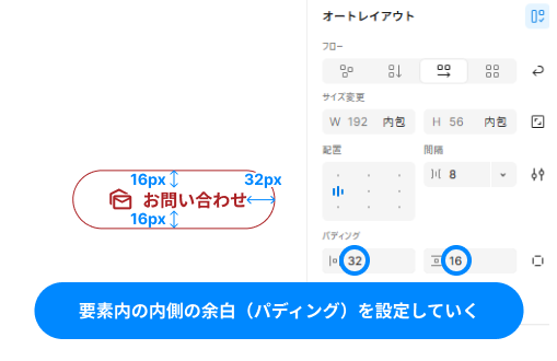 今回はボタン内のパディング設定を例に説明します。