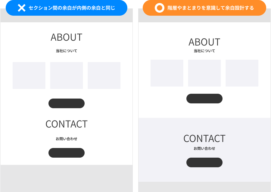 階層を意識してセクション間の余白を考えましょう。