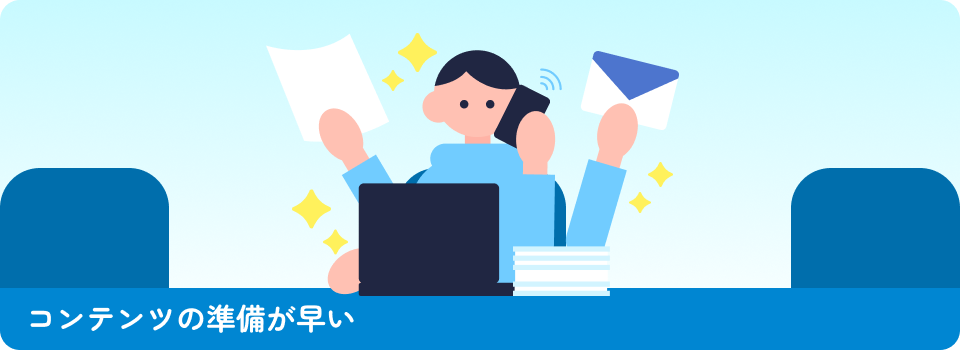 制作がスムーズな案件では、コンテンツ準備が早いという特徴もあります。