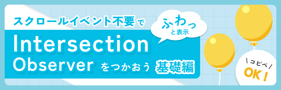 IntersectionObserverの基本の書き方・使い方を説明していきます。