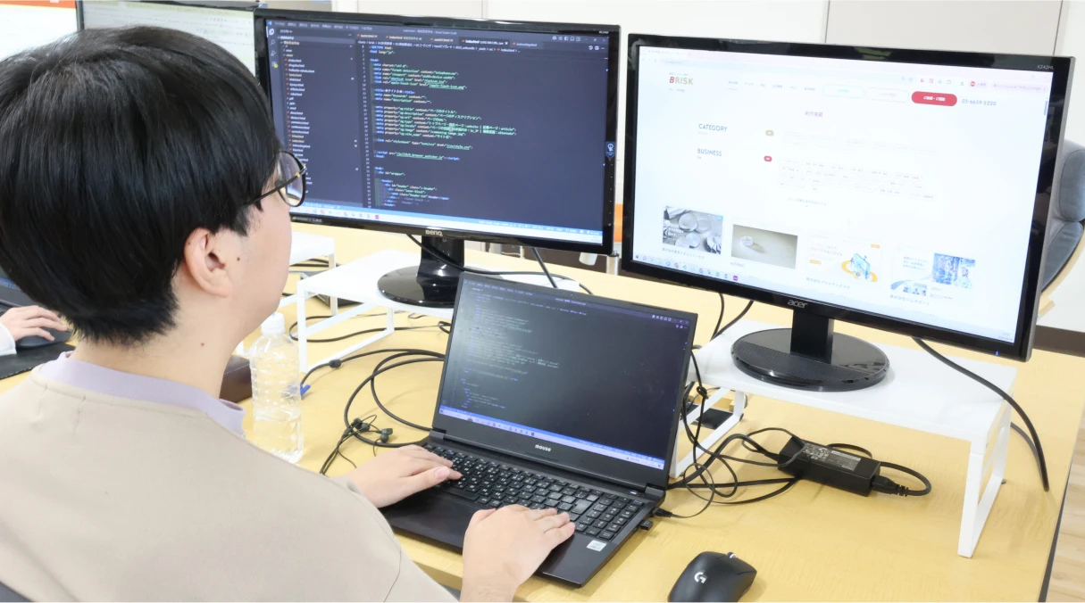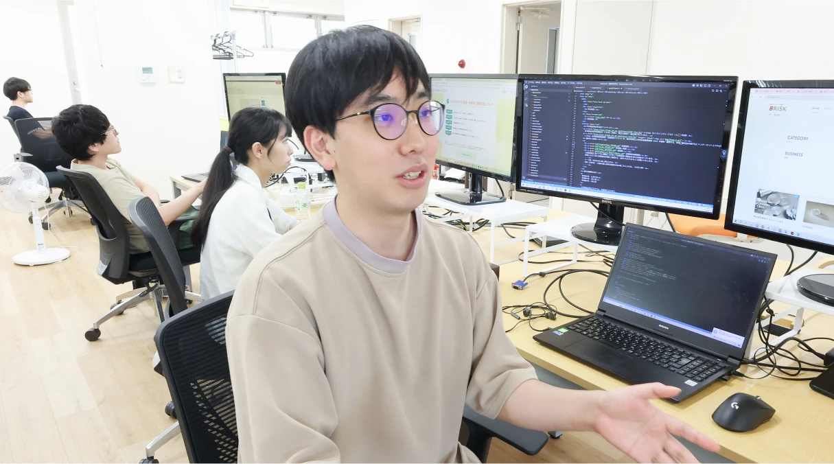 通っていた専門学校の会社説明会でお話をうかがった際、社長のオープンな性格のおかげで壁を感じず、とても話しやすいと感じました。その後、会社訪問で社内の真面目で落ち着いた雰囲気に触れ、BRISKで働きたいと決めました。