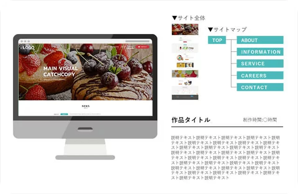 作品の内容はWEB以外のグラフィックデザインやイラストなどでも構いませんが、基本的な業務ではWEBデザインが多いので当然WEBデザインの割合が多い方が評価が上がります。