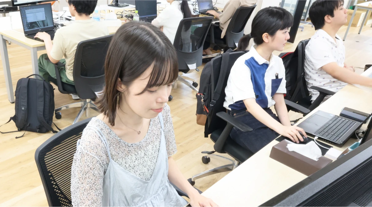 出社時はもちろん、リモートワークでもZoomですぐに相談できる環境があります。仲間も先輩も優しく頼りがいがあるため、安心して学び、成長できます。