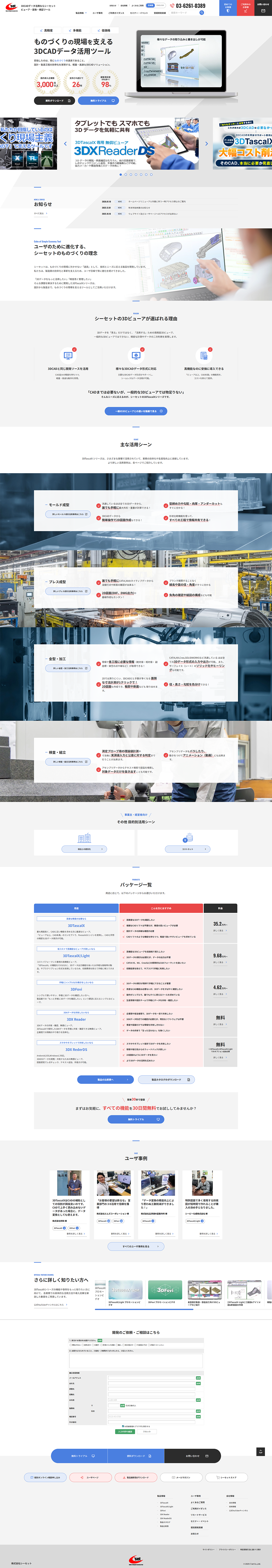 3次元データ有効活用を目的とした技術系アプリケーションの開発などを行っている株式会社シーセット様のホームページリニューアルを担当いたしました。