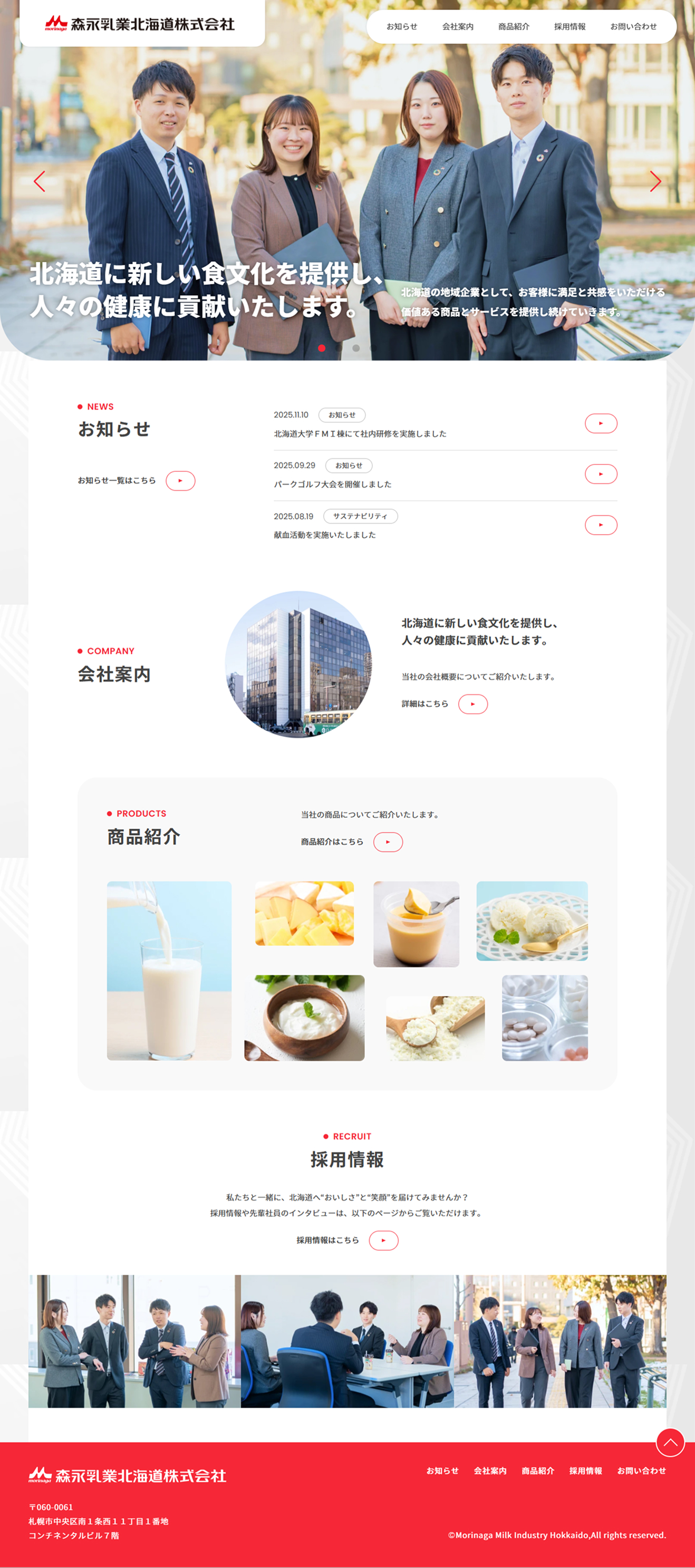 森永乳業北海道株式会社 のコーポレートサイト制作を担当させていただきました。