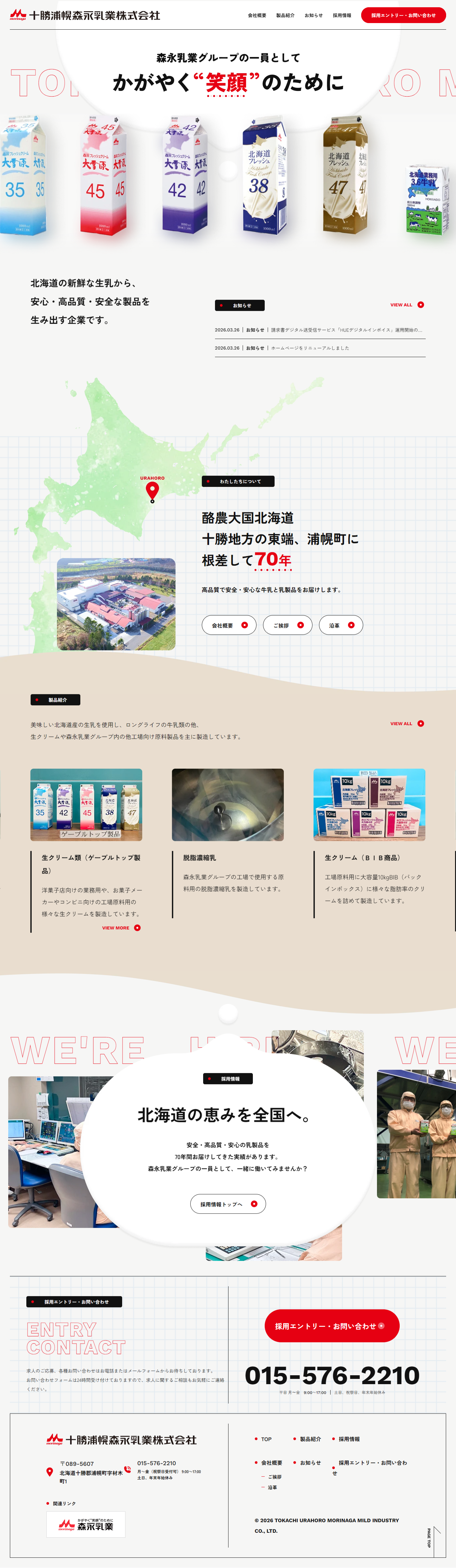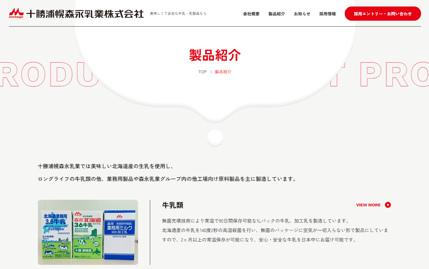 森永乳業北海道株式会社 のコーポレートサイト制作を担当させていただきました。