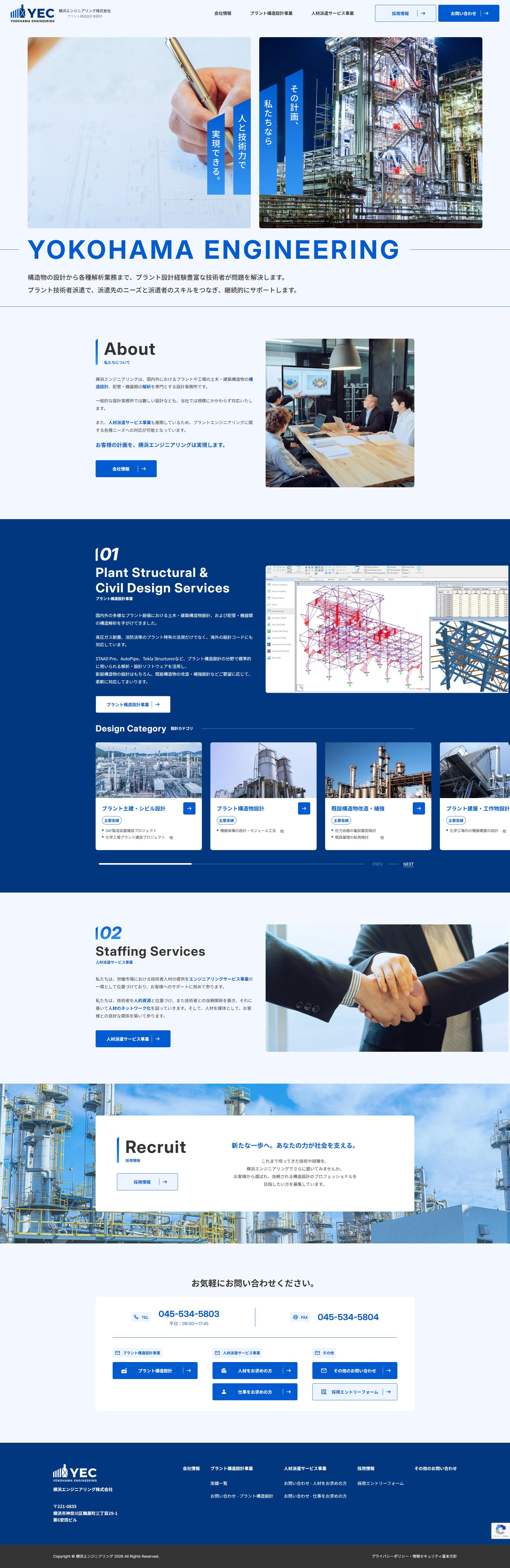 プラント構造設計事業と人材派遣サービス事業を主軸とする、横浜エンジニアリング株式会社様のコーポレートサイトリニューアルを担当いたしました。
